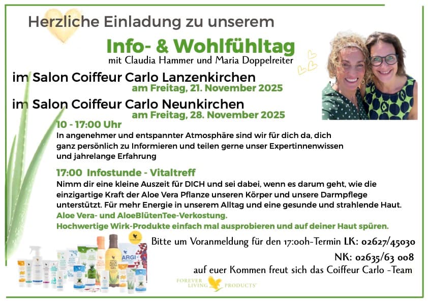 Herzliche Einladung zu unserem Info- & Wohlfühltag mit Claudia Hammer und Maria Doppelreiter